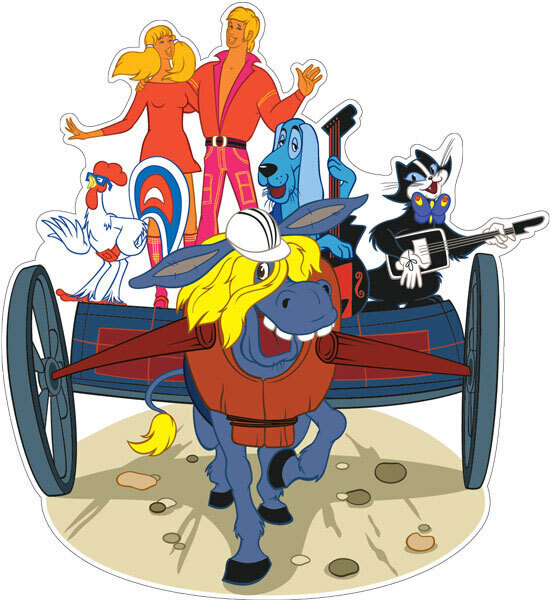 Плакат вырубной А3. Бременские музыканты из мультфильма Бременские музыканты (с блестками в лаке).