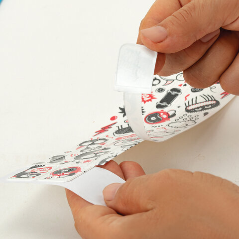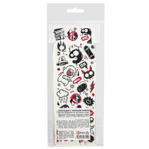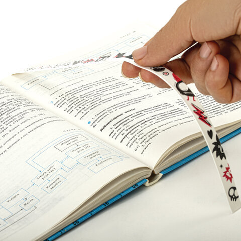 Закладка пластиковая. Основание закладки имеет липкую сторону, которую нужно приклеить на заднюю часть обложки книги и плотно прижать. Длина каждой закладки – 376 мм. Специальная длина для рабочих тетрадей формата А4. Если нужна закладка короче, можно просто отрезать изделие до нужной длины.
