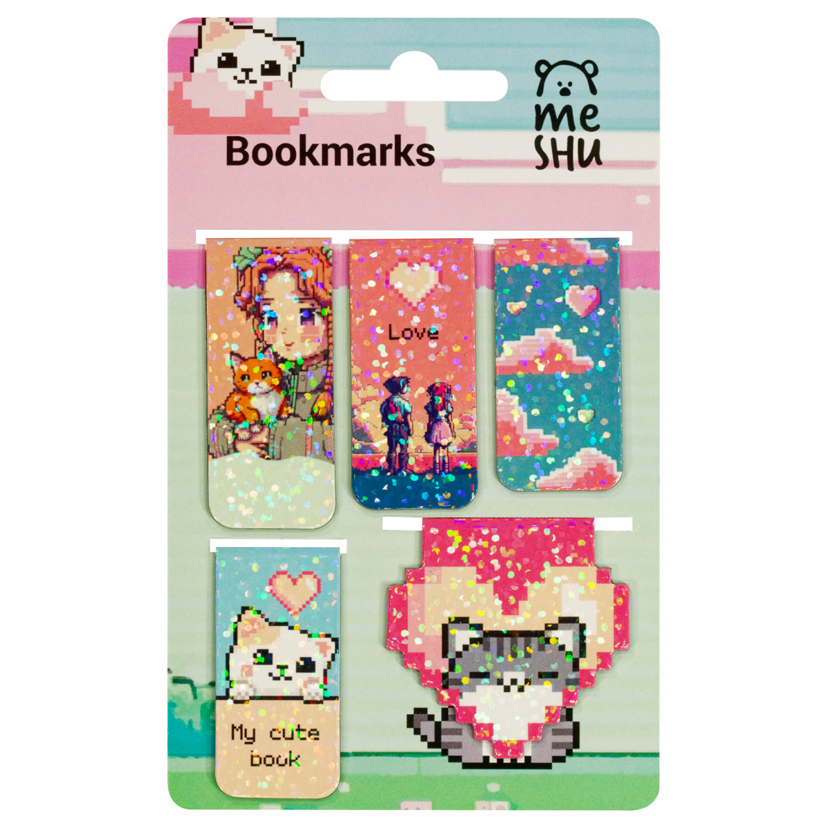 Магнитные закладки MESHU "Pixel" помогут запомнить и быстро найти нужную страницу книги. В набор входят пять аксессуаров с разными дизайнами.