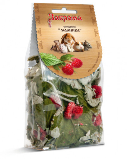 Низкокалорийное и полезное дополнение к основному рациону шиншилл, кроликов, крыс, дегу, морских свинок, хомяков и мышек. Щадящая сушка с максимальным сохранением дубильных веществ, органических кислот, фитонцидов, минералов и микроэлементов. Высокое содержание клетчатки (20 %) для отличного пищеварения. Состав: лист малины, ягоды малины. Без красителей и консервантов.