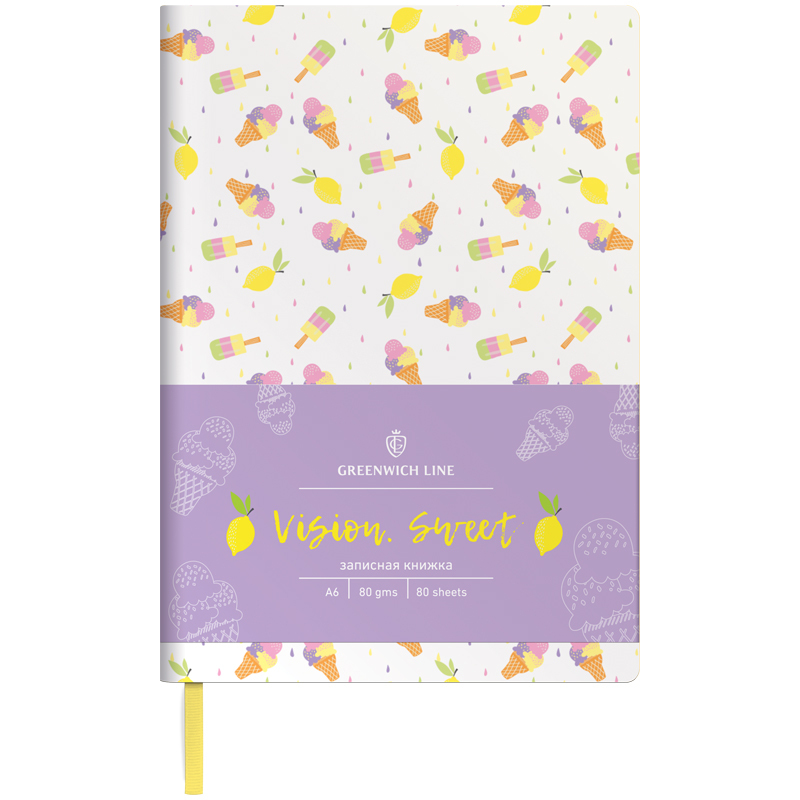 Записная книжка в мягкой обложке, выполненной из искусственной кожи с яркими и модными принтами, нанесенными УФ-печатью. Внутренний блок из тонированной офсетной бумаги кремового цвета повышенной плотности 80 г/м2