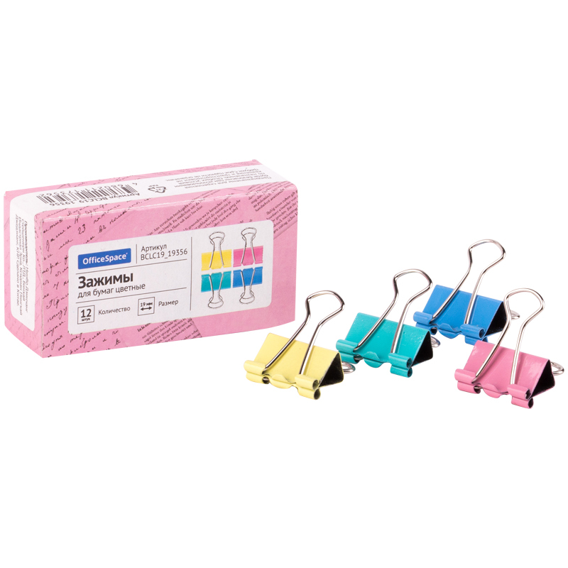 Для скрепления большого количества листов. Не деформируют бумагу. Цвет ассорти. 12 штук в коробочке.