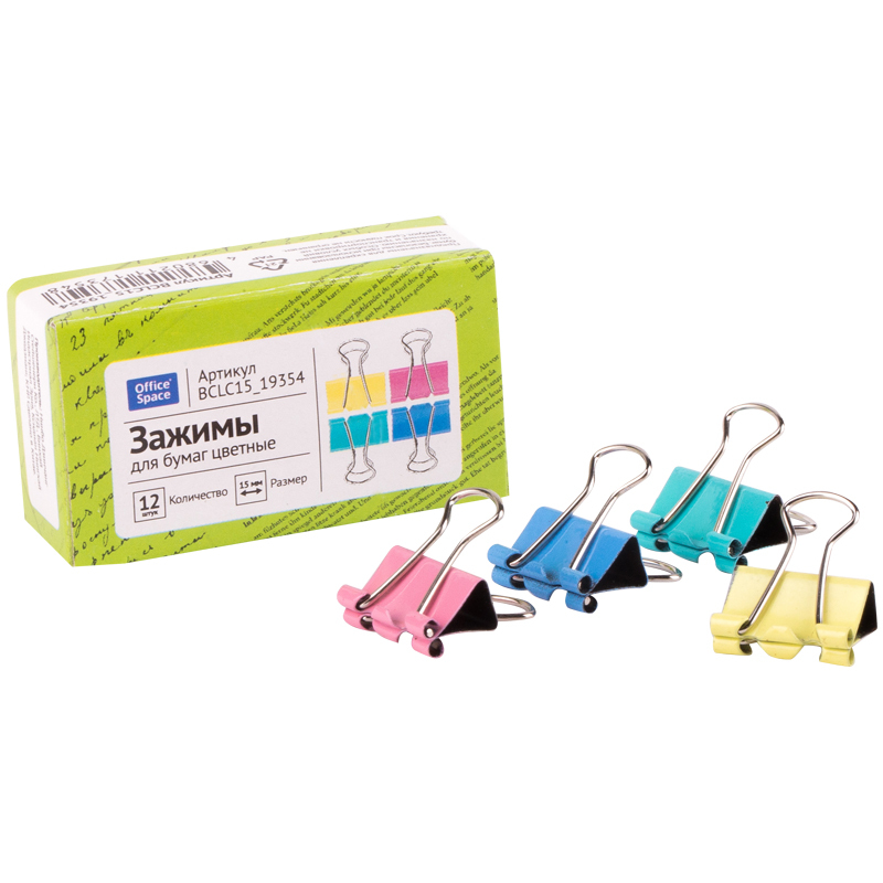 Металлический зажим для бумаг, корпус окрашен в различные цвета. Для скрепления большого количества листов. Не деформируют бумагу. Цвет - черный. 12 штук в коробочке.