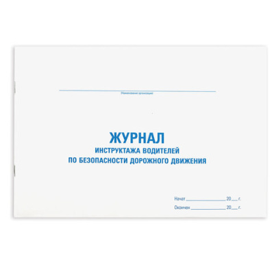 Обложка выполнена из высококачественного мелованного картона плотностью 240 г/м2. Горизонтальная ориентация. Внутренний блок содержит 48 листов офсетной белой бумаги плотностью 65 г/м2. Формат – А4 (292x200 мм). Для предоставления водителю информации, необходимой при реализации процесса перевозки, на предприятиях проводят соответствующие инструктажи. Видов инструктажа несколько (вводный, предрейсовый, специальный и сезонный), о прохождении каждого водитель расписывается в журнале инструктажа водителей по безопасности дорожного движения.