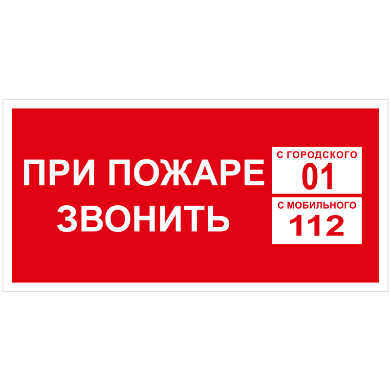 Знак пожарной безопасности OfficeSpace "При пожаре звонить 01", 150*300мм, самоклейка SS_28984 И